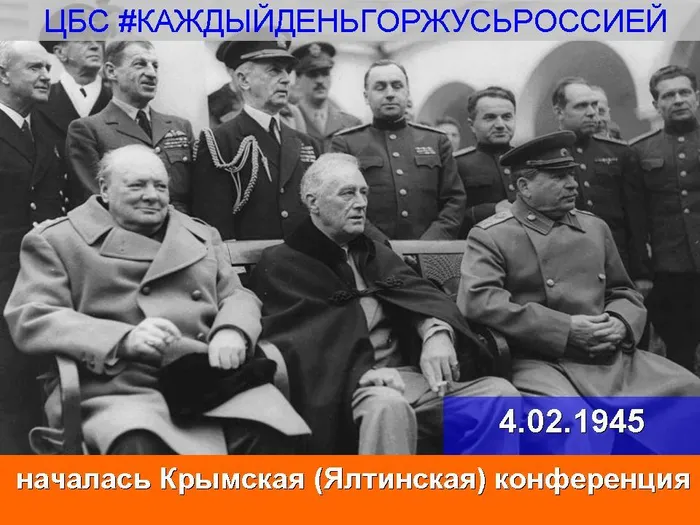 4 — 11 февраля 1945 года – состоялась Крымская (Ялтинская) конференция, официальная встреча глав союзных государств антигитлеровской коалиции : СССР, США и Великобритании во время Второй мировой войны. Помимо... Ялтинская конференция, проходила за несколько месяцев до окончания войны, на фоне важной Висло-Одерской операции советских войск и высадки союзных войск в Нормандии.